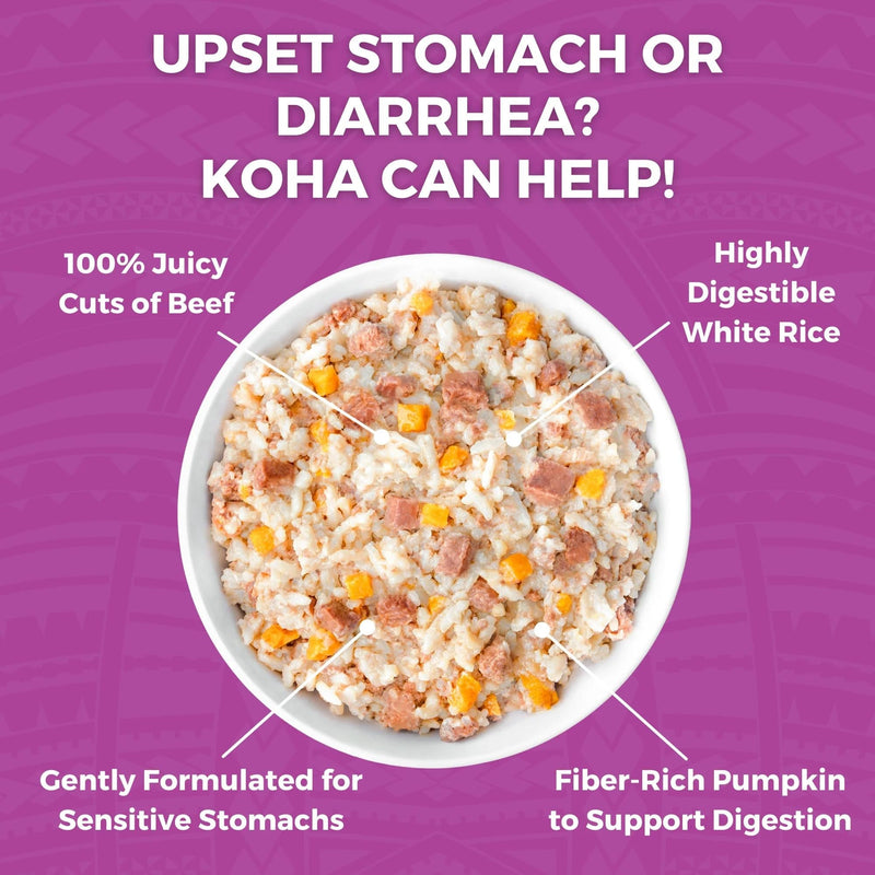 KOHA Bland Diet for dogs is ideal for dogs with upset stomach, loose stool, or diarrhea. This gently formulated limited ingredient dog food recipe has just one protein source for easy digestion. It also includes white rice and pumpkin to support healthy stools and regularity.