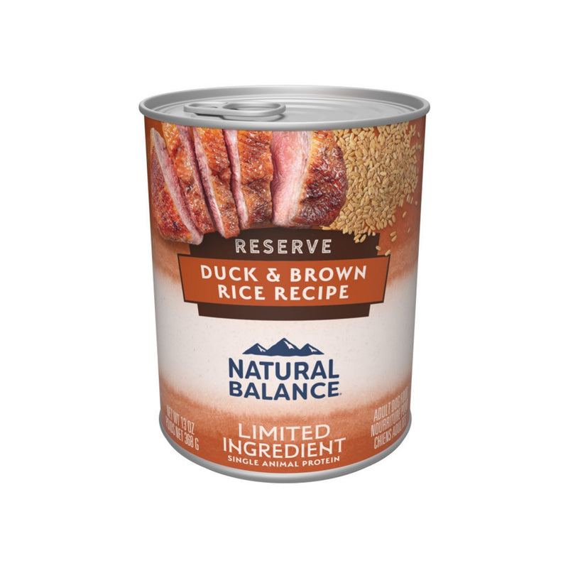 Give your pup the balanced nutrition he craves with Natural Balance Limited Ingredient Reserve Duck & Brown Rice Canned Dog Food. This recipe with grains features premium duck as the first ingredient for irresistible flavor, easy digestion, and support for lean muscle mass. Single animal protein from duck and wholesome fiber from brown rice help support healthy digestion in this limited ingredient formula. Brown rice provides hearty taste and fiber for digestive support, while duck broth adds wag-worthy flavor your dog will savor. It’s a delicious, tummy-friendly meal your pup will love!